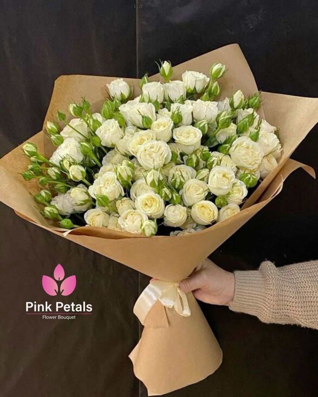 30 PCS WHITE BABY RIOSES HAND BOUQUET