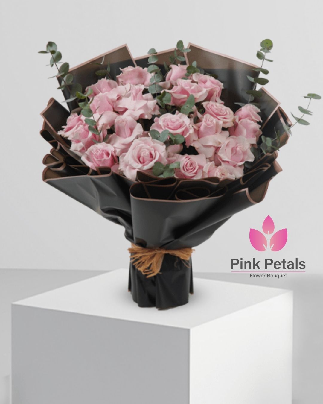 25 PCS PINK ROSES WITH GREEN FILLERS BOUQUET