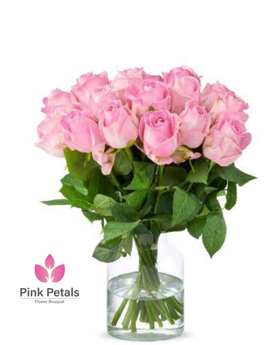 20 PCS PINK ROSES WITH GLASS VASE